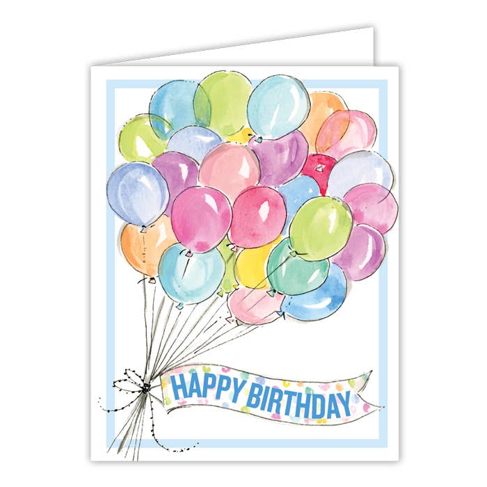 Handpainted Happy Birthday Balloons Greeting Card
