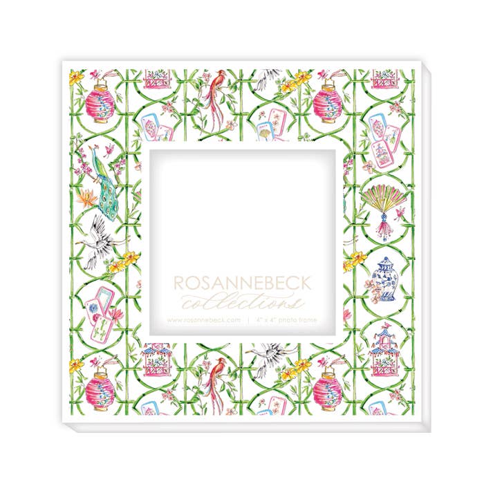 Handpainted Mahjong Icons In Bamboo Trellis Frame 4x4 White