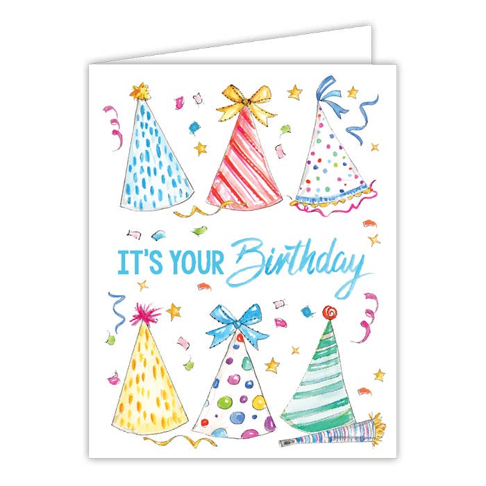 Handpainted It's Your Birthday Party Hats Greeting Card