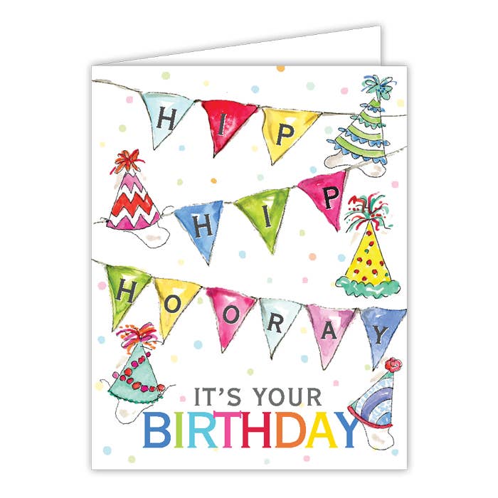 Hip Hip Hooray It's Your Birthday Banners Hats Greeting Card