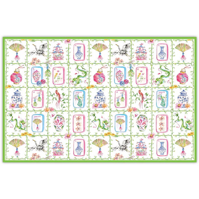 Mahjong Icons in Green Bamboo Trellis Placemat