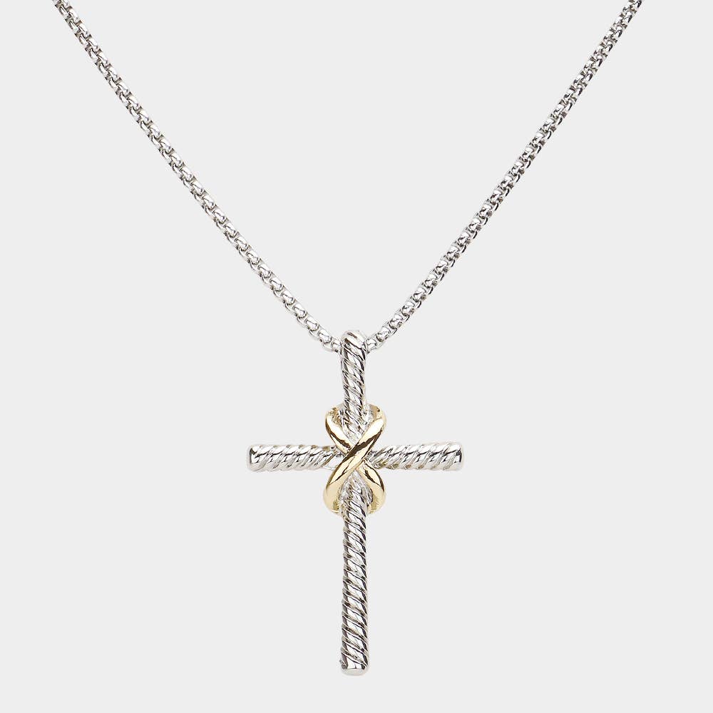 14K Gold Plated Two Tone Textured Cross Pendant Necklace • Necklace Size : 16.25" + 2.25" Gold Dipped