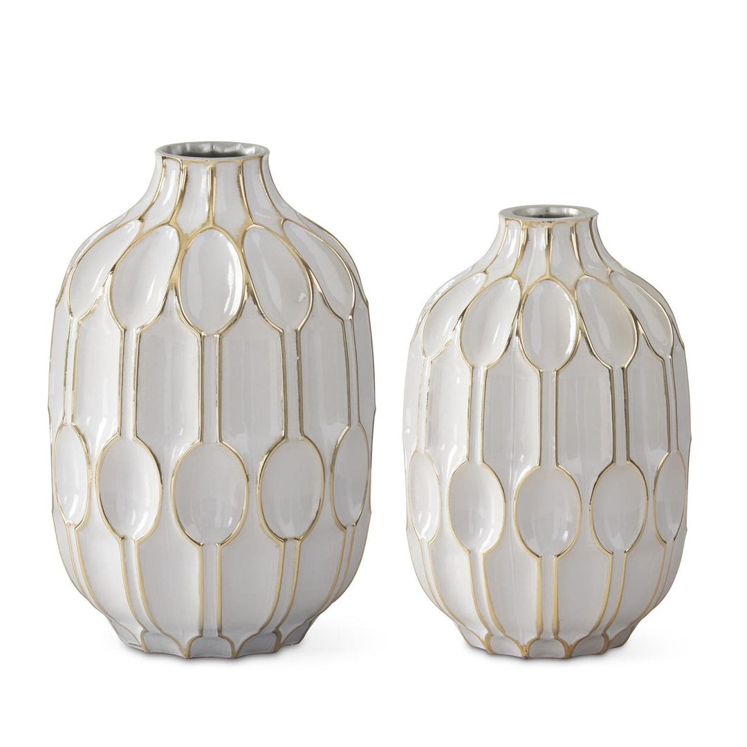 White Glass & Gold Oval Embossed Vases