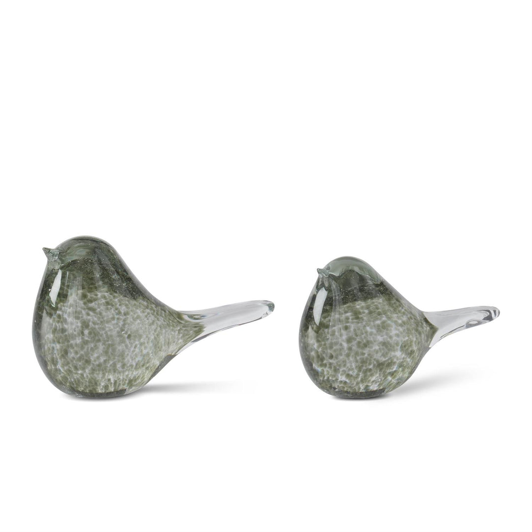Green Speckled Clear Glass Birds