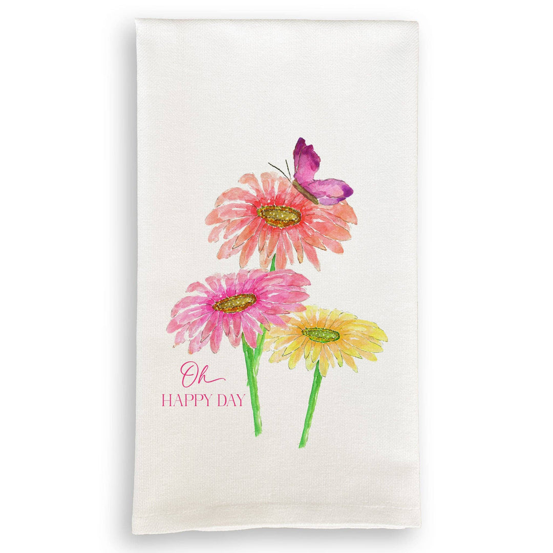 Three Zinnias with Butterfly Tea Towel