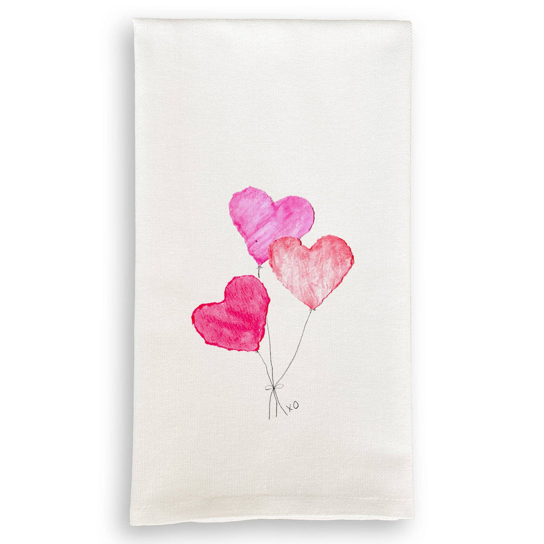 Three Balloon Hearts Tea Towel