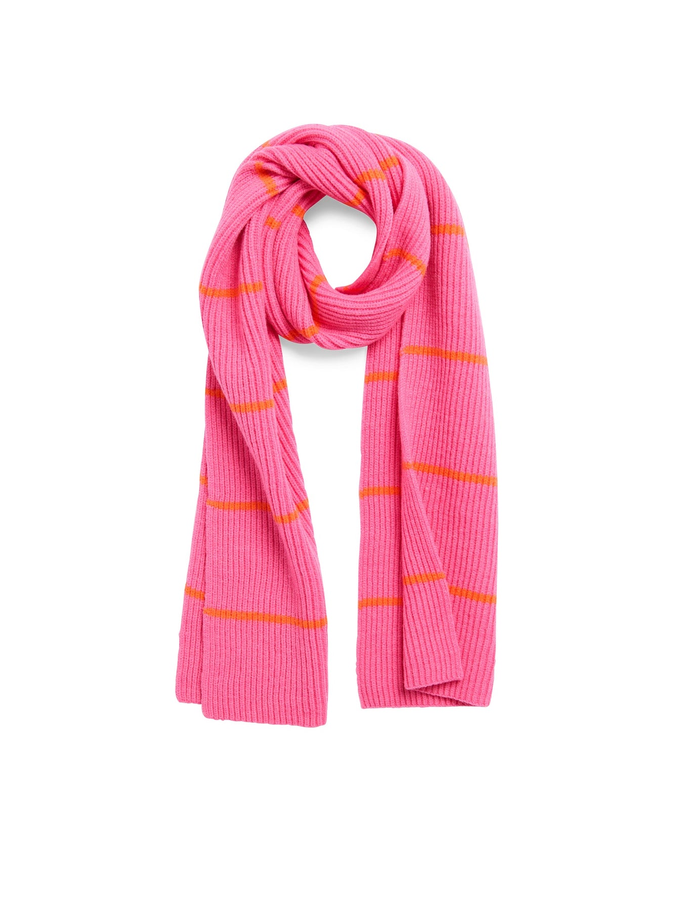 Stay stylish and snug with the Allison Scarf, a lively ribbed knit adorned with bold, colorful stripes. Its roomy length lets you mix and match your look—layer it loosely or wrap it up cozy and tight. Lightweight yet warm, this scarf adds a cheerful splash to any outfit and pairs perfectly with the matching beanie and gloves for a playful, coordinated look.