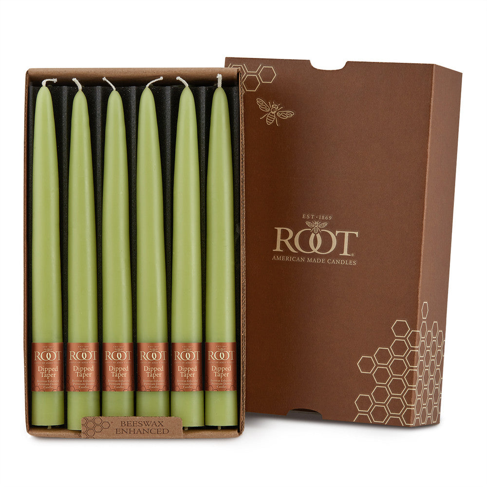 Brighten your table with these 9-inch dipped taper candles, enhanced with beeswax for a smooth, solid color glow. Featuring 100% natural fiber wicks, they promise a nearly dripless burn that keeps mealtime mess-free. Proudly made in the U.S.A., these candles bring warmth and charm with every flicker—perfect for adding a little buzz to your dinner vibe!